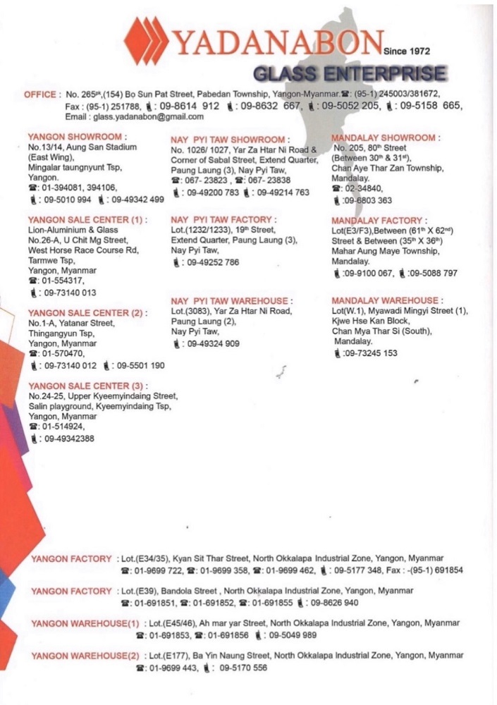 We are Myanmar’s largest glass processing and manufacturing company in Myanmar. Founded in 1972, we are currently in our 3rd generation.